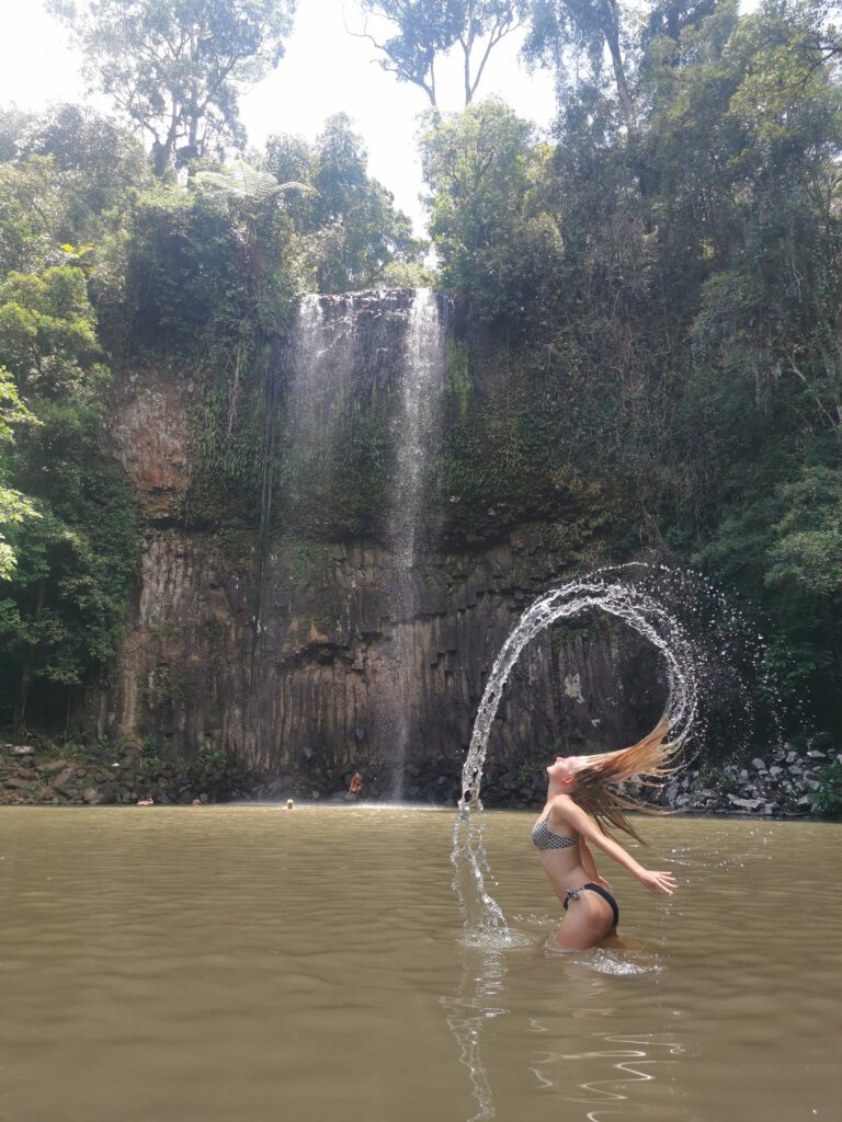 So war das Mittagessen gesichert und wir machten uns auf den Weg zu den „Millaa Millaa Falls“. Hier war ebenfalls ein Fotoshooting mit Terry angesagt: Das Ziel war ein perfektes Haar-Wurf-Bild!