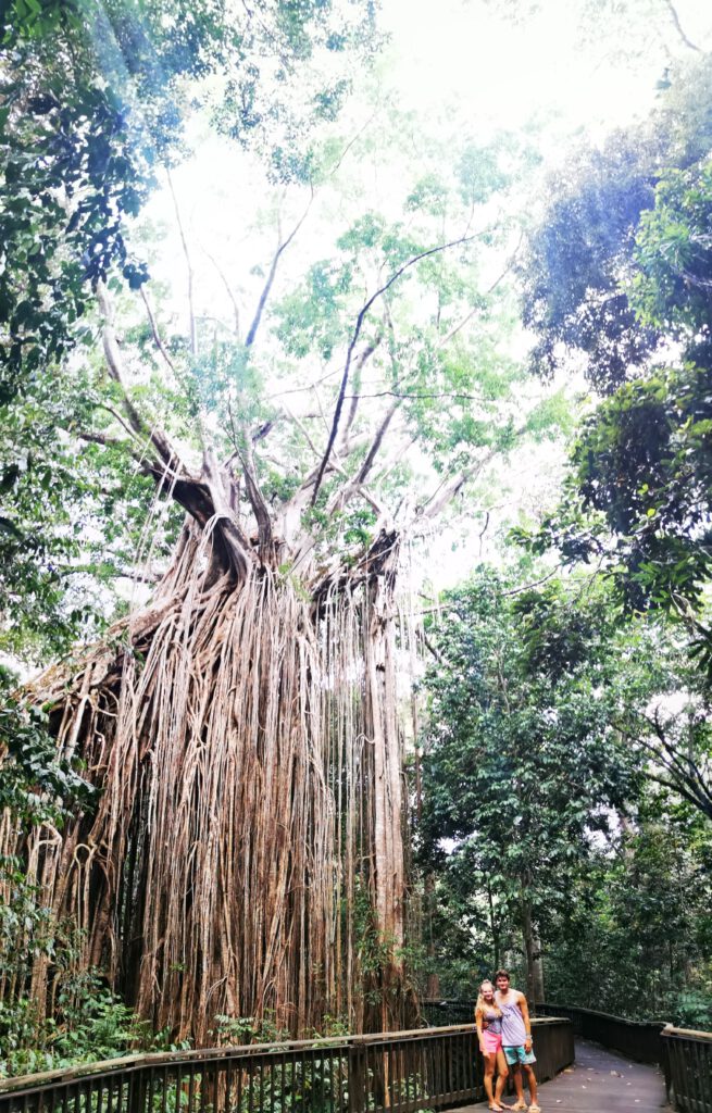 Nachmittags begaben wir uns auf die Suche nach einem kleinen, besonderen Tier: Der Platypus. Leider konnten wir keinen finden, aber der nächster Stop ließ uns diese Enttäuschung schnell vergessen: Der spektakuläre „Curtain Fig Tree“. Diesen gigantischen Baum kann man nicht beschreiben, man muss ihn gesehen haben: