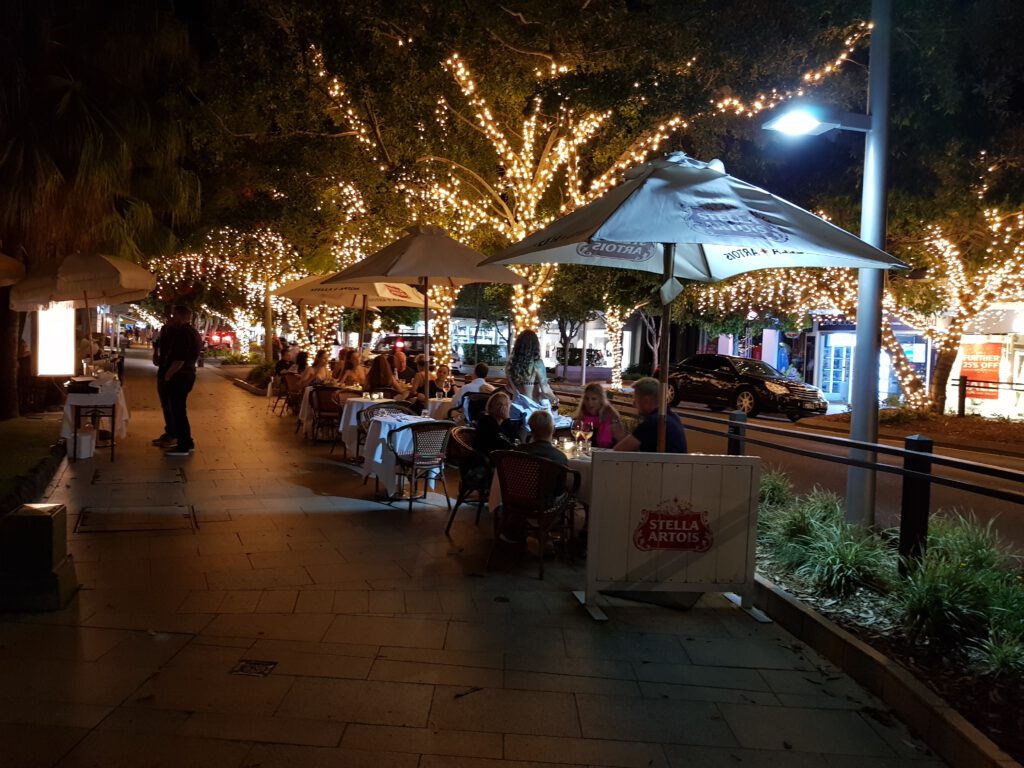 Unseren letzten Abend in Noosa verbrachten wir in der Innenstadt, die (so gut wie es bei 30 Grad ging) weihnachtlich geschmückt war. Und Noosa war nicht nur eine sehr teure Stadt, sondern auch die Stadt der Verlockungen: Überall nette Restaurants, tolle Bars und vor allem: Beeindruckende Eisdielen!